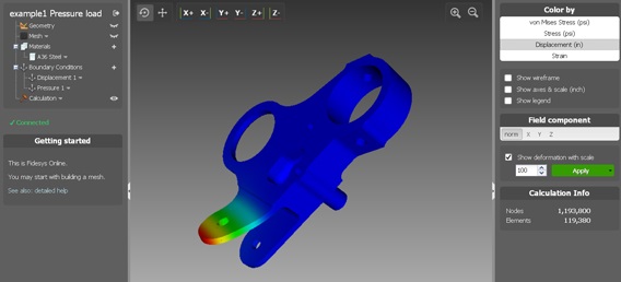SimulationForDesign provides a simplified process for simulation that demystifies analysis including fully automatic mesh generation and automatic assignment of project based material properties featuring an easy-to-use and navigate environment. At the same time it offers extreme reliability as it is based on proven and fully supported commercial Finite Element solutions from Fidesys LLC. And there is no software to install; SimForDesign.com supports web browser based structural analysis and results visualization leveraging the Cloud.