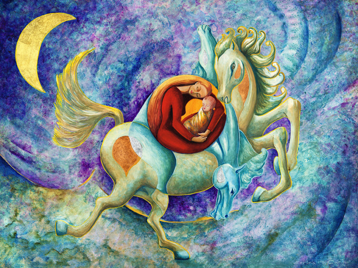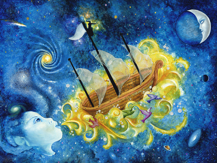 Corina’s work is part of many private collections and she has proven her worth as an artist. This professional level of artwork has lent itself to “Lady of the Wind” which is a beautifully illustrated book of journeys. The text in the book was inspired by the illustrations as opposed to the traditional way of writing text and then illustrating a book. This combination of art and poetry transports readers into an impossible fantastical world. The “Lady of the Wind” is a story of a pilgrim who rides the waves of the cosmos in search of a unique and special gift. This search leads to a journey to the valley of memories as the pilgrim wanders through fields of thought and feeling. Corina’s focus is on the human figure as the main element in her work. She portrays human beings as a multi-dimensional being of psychological, social and spiritual elements. Staying on that track, the lesson of the story is that the most valuable things in the world have no price. The truly important things already exist within us to give and share like universal love. Corina’s art is an expression of the human spirit that uses a mutual and individual language. This definition of the human spirit has made “Lady of the Wind” perfect both as a book for children & for the child in all of us. This book stimulates the senses and the images that speak to the young and old alike.