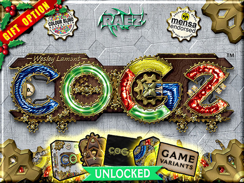 COGZ is the brain-child of Wesley Lamont, lead designer at RAEZ. He has a Masters in Design, and teaches design at several tertiary institutions while working as designer. Lamont has designed more than 100 games, and has 30 games that are in prototype stages.