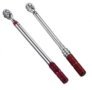 Designed with durable all-steel construction with a corrosion-resistant finish, these metal handle click wrenches are suitable for various industries like construction, automotive, chemical, nuclear, energy and other industrial environments. Click wrenches are the most widely used torque product in the world. When the set torque is reached, the tool typically emits a loud audible "click." The operator can feel the impulse from the tool and most break about 3 degrees after the set torque is reached and then become positive. Proper use and training is required so that operators stop pulling the moment the click sound is heard or felt. Resetting of the tool takes place when the hand pressure is released. Work can then immediately continue on the next fastener.