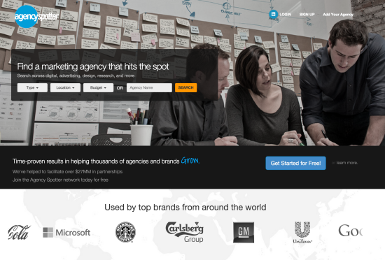 Agency Spotter has the tools to help marketers save time, search smarter, and find better marketing partners. With more than 150,000 unique users in 2014, Agency Spotter helped facilitate more than $27 million in new partnerships across many creative categories from advertising, PR, branding, design, digital, video and many others.