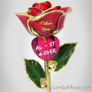 WARRENVILLE, ILLINOIS, USA, February 5, 2015 /EINPresswire.com/ -- This Chicago area company is helping its customers in having Valentine’s Day be a day to remember. The personalized gifts launched at www.LoveIsARose.com hold the words “I Love You” or “Will You Marry Me?” imprinted on the delicate flower petals of real, preserved roses preserved with platinum, 24k gold, or silver. These distinctive, personalized roses deliver a message that is spoken from the heart becoming cherished keepsakes.The real roses -- which have long been a message of love for weddings, anniversaries, and birthdays -- have been hand-picked, carefully selected and preserved at the peak of their beauty, then trimmed in the precious metals. The flowers, which come in an array of colors and sizes, are available with engraved crystal vases, or set in museum cases, cherish boxes, or shadow boxes with personalized messages. Custom messages can also be engraved onto Heart Charms that hang from the bud of the flowers. LoveIsARose.com offers special packages which include free Selfies, personal photos on Heart Charms, that adorn the roses. In addition to gold roses, LoveIsARose.com also offers gold tulips, roses with copper trim, and real preserved lilies and orchids.