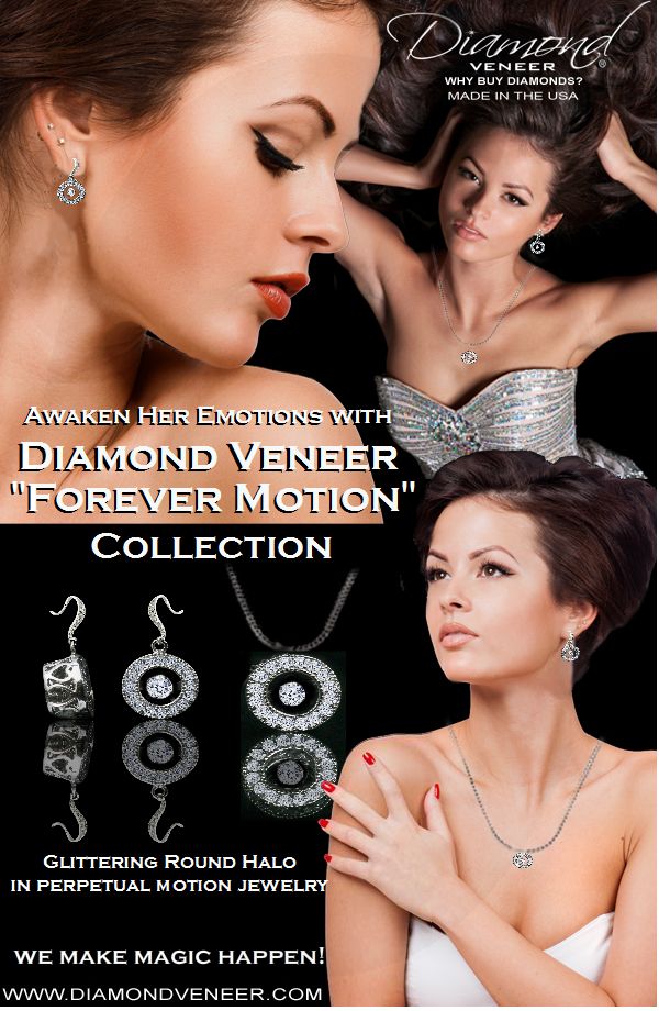 LOS ANGELES, CA, UNITED STATES, February 9, 2015 /EINPresswire.com/ -- Diamond Veneer Jewelry: Why Buy Diamonds?LOS ANGELES, CA - Introducing the “Forever Motion” Diamond Veneer Collection. Hand Crafted in the USA, this Perpetual Motion Jewelry never stops moving. The Glittering effect equals the sparkle of Real Diamonds at an affordable price.