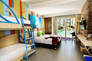 Bliss Surfer Hotel is targeted at people who are young or young at heart, who enjoy theme holidays, and are not afraid of having fun. Its colorful interiors remind people to not take life too seriously and that life is full of variety, while its surfing theme brings the beach and the ocean to the guests. Bliss Surfer Hotel opened its colorful and carefree getaway to the public in February 2012 and has delivered a fun and excitement of a beach vacation through a surfing theme.