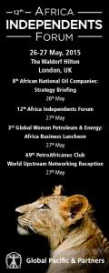 LONDON, UNITED KINGDOM, February 24, 2015 /EINPresswire.com/ -- Global Pacific & Partners is bringing the 12th Africa Independents Forum 2015 to London, at the Waldorf Hilton Hotel from 26-27th May 2015, after a decade of hosting the much-acclaimed Africa Independents Forum within, their traditional Africa Oil Week, annually in Cape TownTwo day program includes: