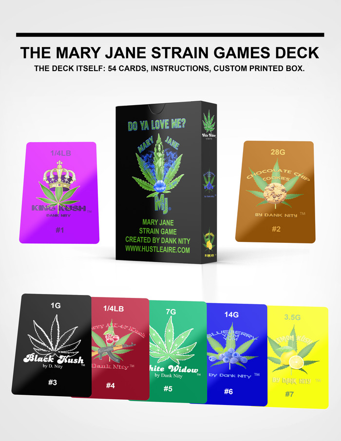 Hustleaire CEO DeAndre Morrow, aka Dank Nity, has developed Mary Jane Strain Games specifically for marijuana users. Mary Jane Strain Games features ten unique games using marijuana strain based playing cards. There is a current Kickstarter crowdfunding campaign in place in order to support the production of this fun game.