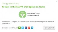 Receiving this award is important because it is based on client reviews, ratings and 2014 transactions, using data collected from Trulia’s “Find an Agent” directory. This prestigious honor includes agents from across the entire United States, and represents less than 1% of all of the agents with their profiles on Trulia.