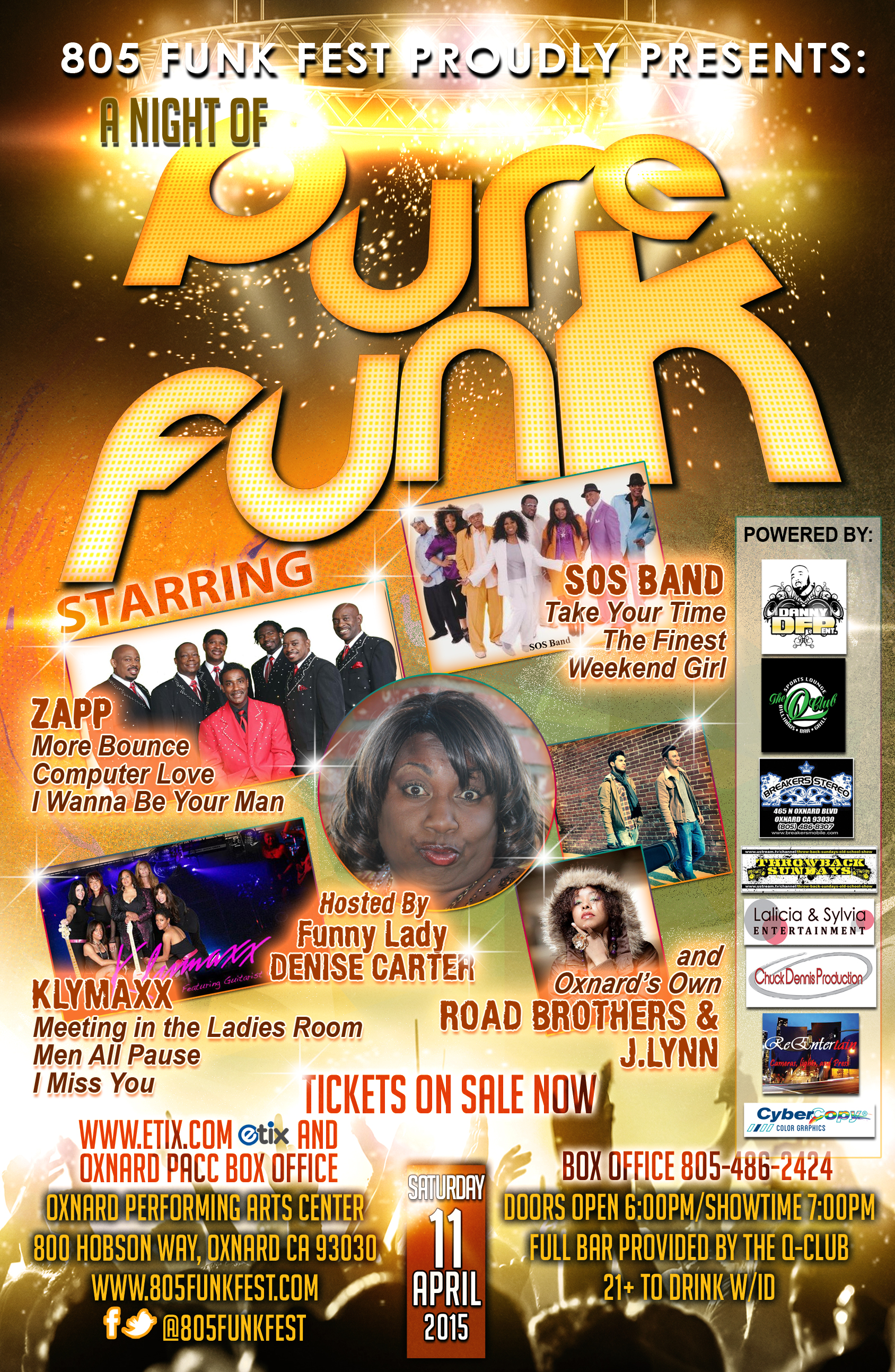 Ventura, CA – March 1, 2015, 805 Funk Fest presents “A Night of Pure Funk” at the Oxnard Performing Arts & Convention Center, April 11, 2015 Doors open at 6PM, Show starts at 7PM.