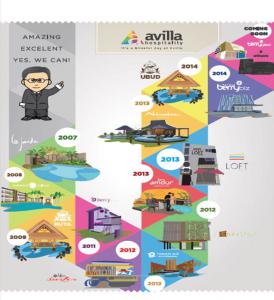 Avilla Hospitality Management & Development is an innovative player in its field and has a vision to be a local champion in Bali. Established in 2010 and has inspired and managed 12 brands. And in this year, 2015, will launch thematic surfer hotel at Brawa Beach, Canggu and thematic youngster hotel at Raya Kuta. Kindly visit www.avillahospitality.com for further details.