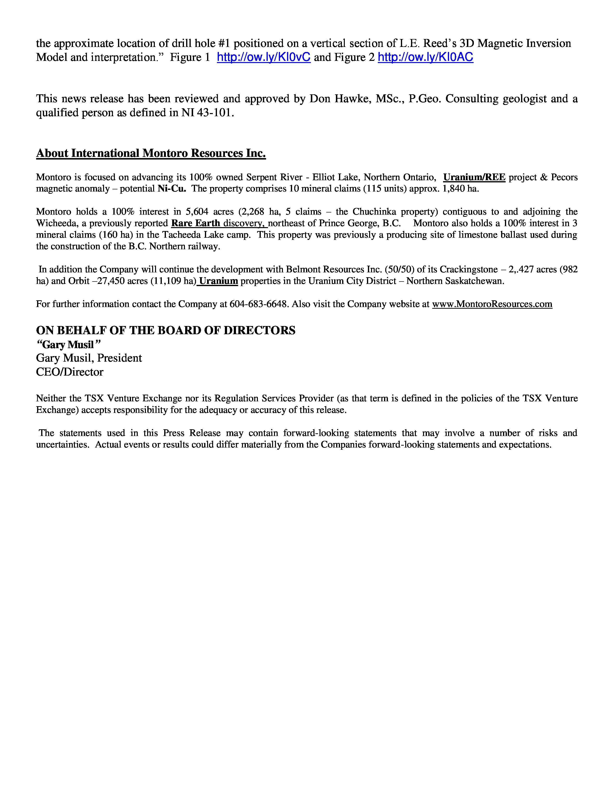 For further information contact the Company at 604-683-6648. Also visit the Company website at www.MontoroResources.com