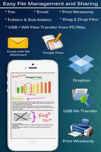 Users can create professional quality documents in open standard format that can be viewed or edited in Adobe PDF, Microsoft Word or any other standard word processing application. The app also features a high quality viewer for Microsoft Word, Excel, Power Point, PDF, Text and a wide variety of image file formats. Users can download files from virtually anywhere from the internet, from a computer through a USB cable or from an external file management system like Dropbox or Google Docs.