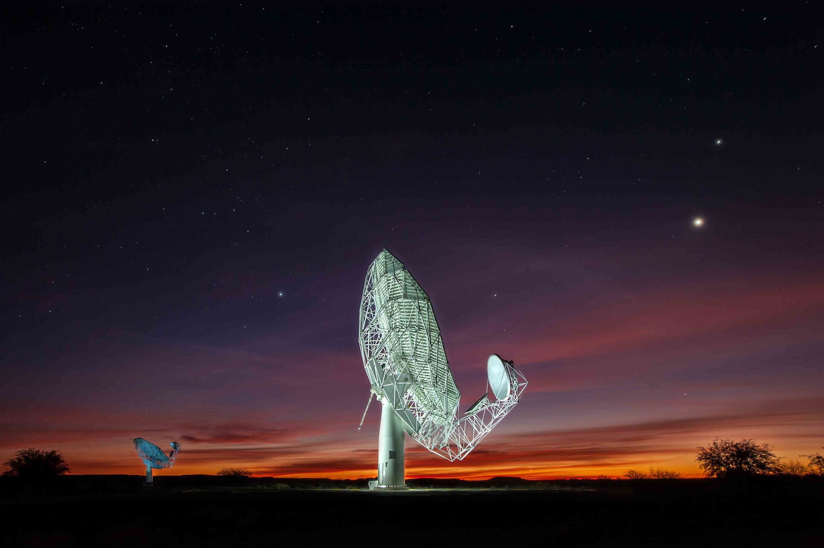 A typical completed radio antenna telescope at the Square Kilometer Array site near Carnarvon in the Northern Province of South Africa. Hundreds of these will be constructed to make up the world’s biggest and most powerful radio telescope, which will be used by astronomers to study the universe. The Science Data Processor of this project will have an estimated computing power of a 100 million desktop computers by its completion in 2030. Photo: SKA South Africa.