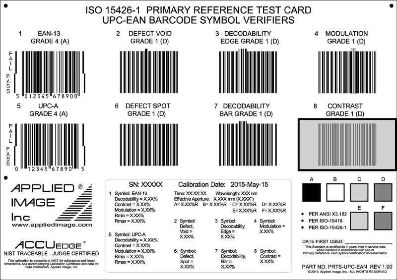Applied Image Announcing the Availability of the New ISO-15426-1 Primary Reference Test Card for UPC-EAN Symbol Verifiers