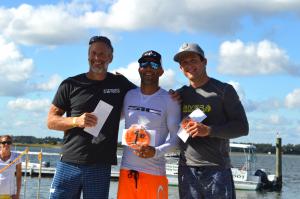 Saturday’s race conditions featured temperatures in the low 80s, with low wind, lots of sunshine, and relatively flat surf. The only weather obstacle was morning fog with a minor race delay for burn-off.