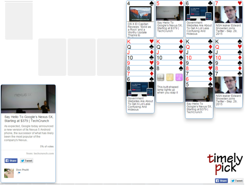 TimelyPick, a curation website releases a fun new way to enjoy their website more by offering a free to play, online Klondike and Spider solitaire game