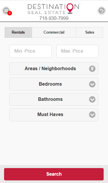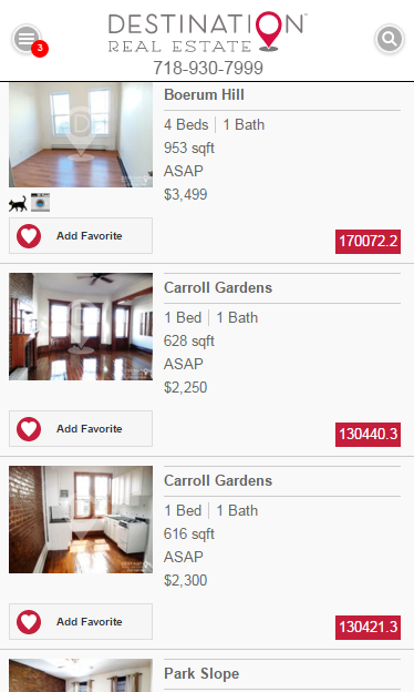 BROOKLYN, NEW YORK, UNITED STATES, January 14, 2016 /EINPresswire.com/ -- Destination Real Estate is proud to announce the release of its new responsive website designed specifically with mobile users in mind. This new mobile website recognizes and adapts to the device a client is using and automatically constructs a custom user experience that works intuitively and seamlessly.Users will now be able to search for apartments as well as sales and commercial listings more quickly and efficiently than ever before. Photos, location maps, video walkthroughs, floor plans are also integrated into the design so users can still access the same wealth of information as on the desktop website. New functionality includes creating a favorites list and a streamlined appointment request feature.