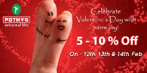 CHENNAI, TAMIL NADU, INDIA, February 11, 2016 /EINPresswire.com/ -- Pothys, a respected household name in Tamil Nadu best known for its gorgeous silk sarees has announced an online sale on all of its products on 12th, 13th and 14th February 2016. Sources at Pothys have said that the sale will be on from the morning of the 12th on its website, www.pothys.com, and customers can choose from a wide variety of clothing options for men, women and children. Online shoppers can enjoy buying all the products at Pothys at a discount between 5% and 10%.From the famed pattu sarees to sarees from Kancheepuram, Kota, Pochampally, Odisha, Rajkot and Mysore, Pothys has it all. It also has a wide range of designer sarees for all occasions as well as traditional women wear like chudidhars, lehengas and kurtis. Men’s silk shirts, dhotis and a veritable range of children’s ethnic and contemporary wear will also be available to online shoppers.