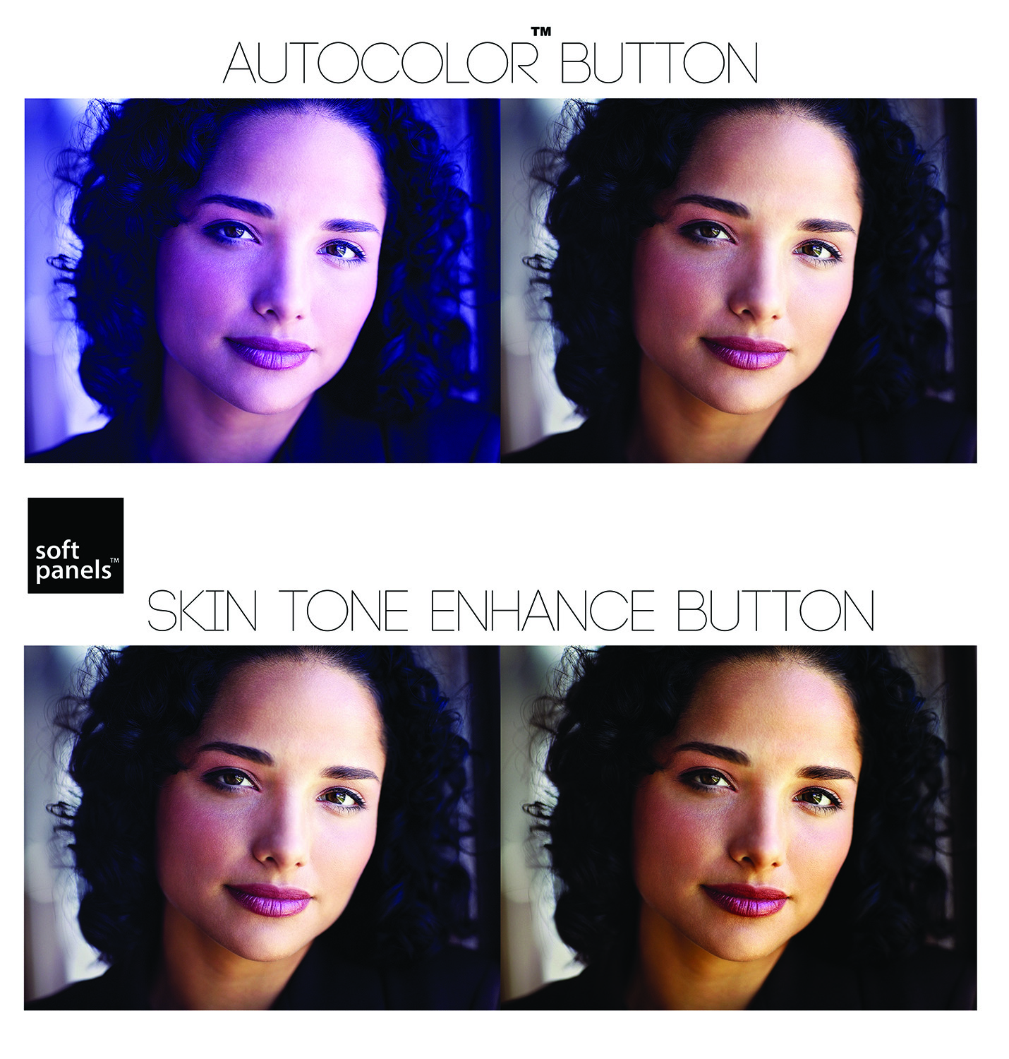 “Not only do the patent-pending Softpanels deliver a perfectly matched color temperature,” said Kevin Baxter, Softpanels’ CTO and a two-time Emmy® award-winner for LED lighting innovation. “There’s also a Skin Enhance button. You simply press this second button, and instantly the light is warmed, giving skin a much more pleasing cinematic quality, via what is essentially an electronic warming filter. Importantly, many times video can produce unhealthy looking skin tones, and Softpanels ‘easy button’ skin enhance feature instantly makes this problem go away.” In addition, on-camera subjects that have a more Northern European background with lighter-toned skin, simply look better on video, as well as on still images with a warmer, more ‘suntan’ skin tone. This becomes readily apparent when you view before-and-after images of subject’s skin tone using the breakthrough Skin Tone enhance feature.