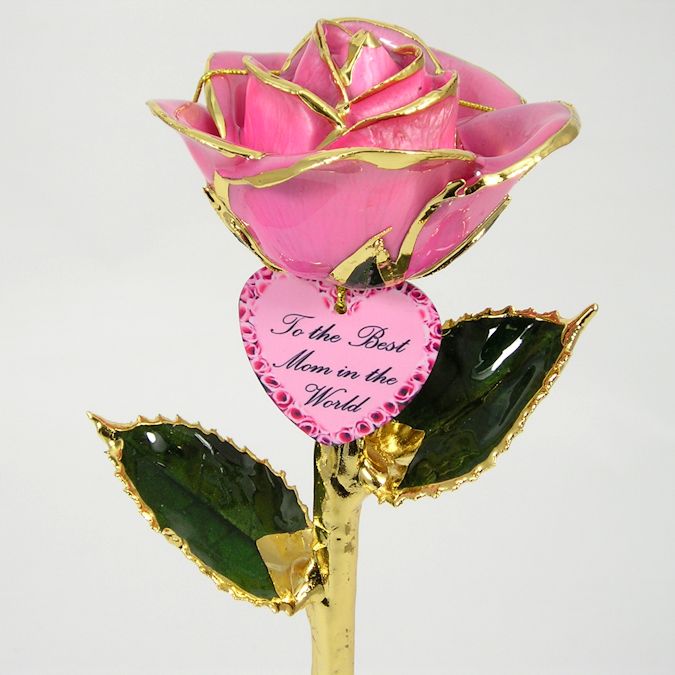 WARRENVILLE, ILLINOIS, USA, April 13, 2016 /EINPresswire.com/ -- LoveIsARose.com pays tribute to moms everywhere with the new “To the Best Mom in the World” gold rose. A personalized Heart Charm adorns the eleven-inch high, real preserved rose trimmed in 24kt gold, platinum, or silver. This new rose joins the field of gold flowers available at the Chicago area company.The roses, lilies, and orchids available at www.LoveIsARose.com have been hand picked, carefully selected and preserved at the peak of their beauty then trimmed or dipped in 24kt gold, silver, platinum, or copper. The material used to preserve them is delicately applied, creating a flower that will last a lifetime.
