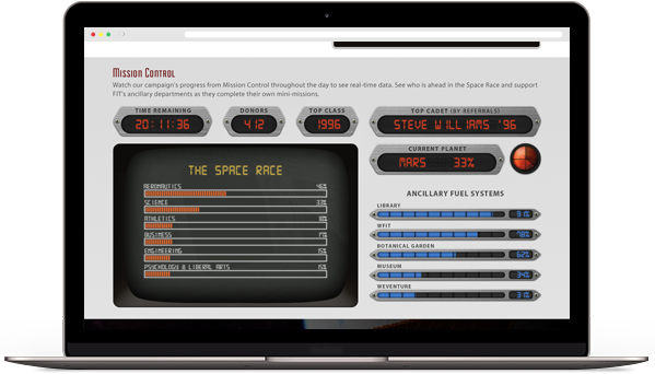 In addition to Mule Madness, KDG earned an award in the User Experience category for their higher ed web design on Florida Institute of Technology's Day of Giving Campaign website. KDG designers pulled out all the stops to deliver a space-themed site that reflected the school’s NASA roots and kept people engaged long after they made a donation.