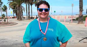 Marie suffers from severe lymphedema and had never before traveled by plane or participated in a 5K, but she was determined to be there for the first-ever CA Run/Walk last year. Marie made it to Santa Monica and finished the challenging course. A Run/Walk Sponsor representative, Dennis Schlaht of ImpediMed, was so inspired by Marie’s determination that he held a medal aside, ensuring it would be waiting for her when she stepped under the finish-line banner.