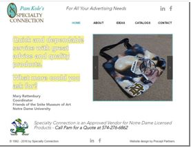 With over 20 years of experience in the promotional advertising products industry Specialty Connection works with clients across the greater Michiana region. Today, Specialty Connection is an authorized vendor to the University of Notre Dame for logo products and promotional merchandise. The company offers a broad selection of products at highly competitive prices, with an unmatched level of personal service. Visit www.PamKole.com for additional details.