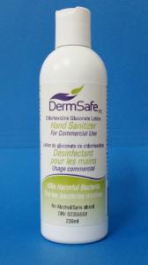 DermSafe is uniquely different than other hand sanitizers. It acts as a long-lasting protective barrier binding to the skin while actively combating the spread of germs between people and hard surfaces, or in this case infected water. It is a non-alcohol lotion made with 4% chlorhexidine gluconate (CHG), an ingredient which has demonstrated long-term persistence in its ability to kill both gram-negative and gram-positive bacteria and viruses. DermSafe has been successfully tested against a host of infectious germs including Methicillin-resistant Staphylococcus aureus (MRSA) and Escherichia coli (E. coli).