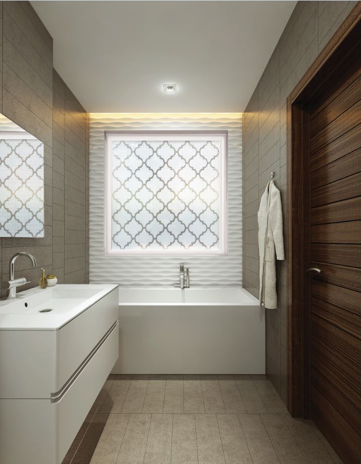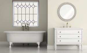 - Baroque - a dramatic, show-stopping design inspired by classic and modern tile, this window provides a unique way to blend texture into a room. Silkscreened tempered privacy glass with clear lines creates this memorable design, while textured exterior privacy glass provides seclusion. Available in 48" x 48" and 36" x 60" sizes.