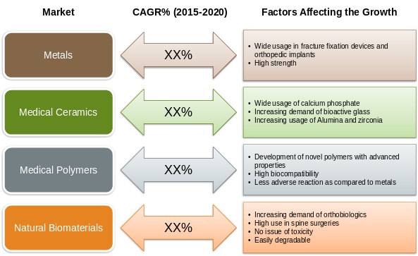 The report provides comprehensive view about the orthopedic biomaterials market. The reports includes four types of biomaterials