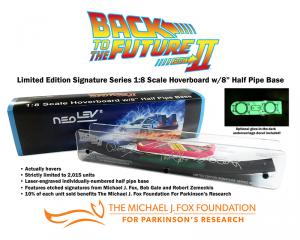 NeoLev® Technologies has consulted with Mr. Gale—as well as BacktotheFuture.com’s Stephen Clark, to ensure continued product accuracy on their latest levitating Hoverboards in a miniature scale. These Back to the Future™ 1:8 Scale Limited Edition Hoverboards with laser-etched Michael J. Fox and filmmaker signatures can now be ordered on Indiegogo.com, and some additional Back to the Future™ swag can be selected as perks! With 10% of the proceeds from each sale going to The Michael J. Fox Foundation for Parkinson's Research, the future is now! Visit http://www.indiegogo.com/at/backtothefuturehoverboard to support this campaign before you’re OUTATIME…
