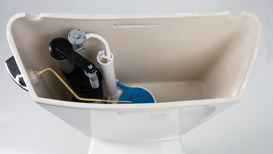 "Toilets function as a system. All the components needs to work together. Consider a high efficiency toilet (HET) that uses just 1.28 gallons per flush (Gpf) or lower. The trapway design and internal volumes of water in the bowl become ultra-critical with low water consumptions. The flush valve inside the tank regulates how much water goes down when the toilet is flushed."