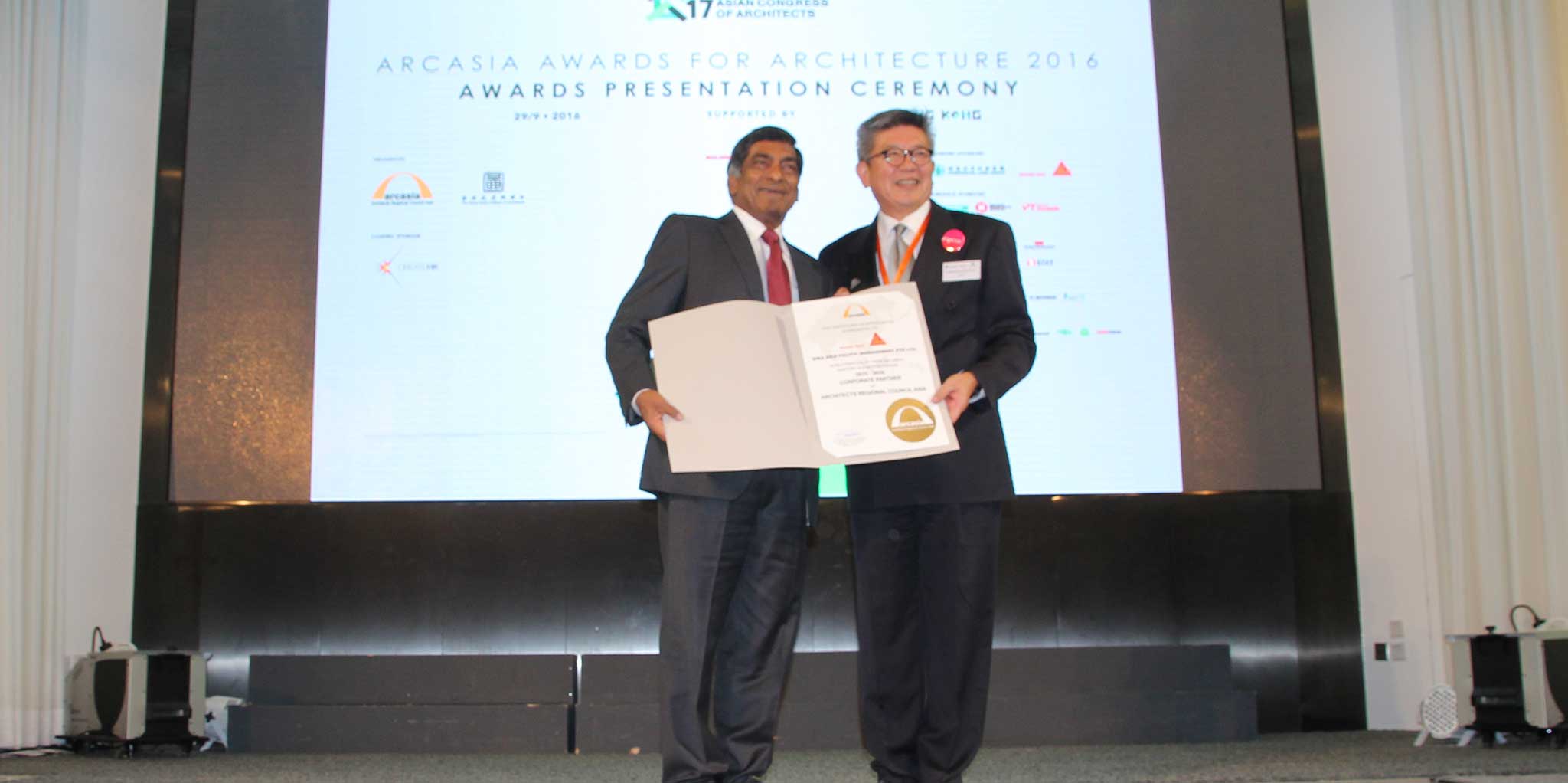 At ARCASIA Awards for Architecture 2016 Presentation Dinner sponsored by Sika, the Sayama Forest Chapel by Hiroshi Nakamura from Japan won the Awards for Architecture 2016. Sika Asia Pacific Management PTE. Ltd. was awarded as 2015-2016 Corporate Partner of Architects Regional Council Asia. The Board Chairman of Sika Kimia Sdn. Bhd. Mr. Dato Aru received the award on behalf of Sika.
