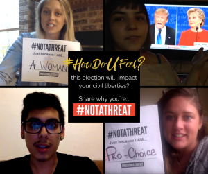 The current question is #HowDoUFeel this election will impact our civil liberties? Share with us why you’re #NotAThreat!” Participants follow three easy steps:
