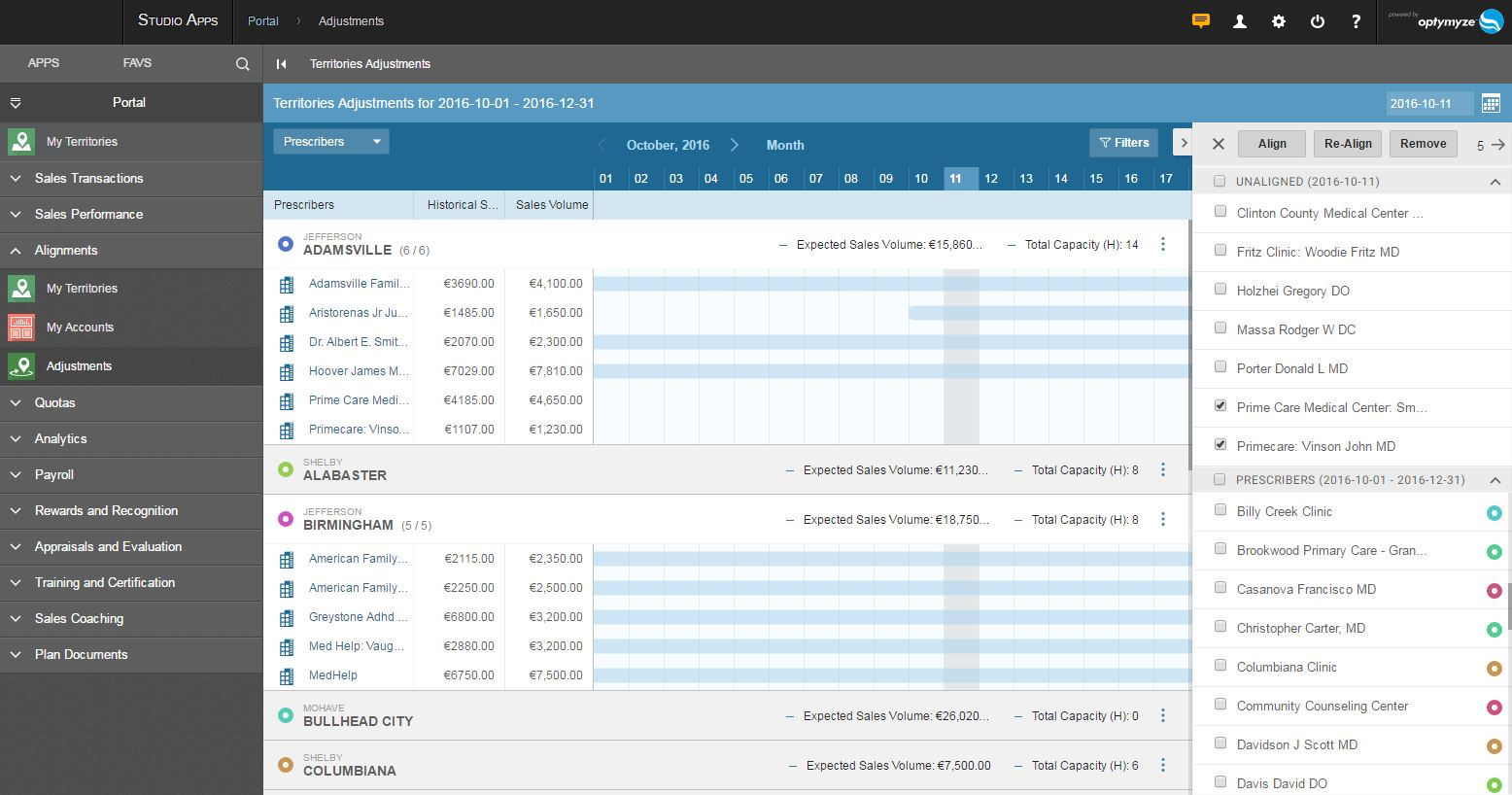 On top of superior visuals, Optymyze Sales Territories now enables smarter and more agile territory adjustments based on impact analysis. Leveraging the new territory adjustment capabilities, users can create a copy of live data, perform various adjustments on it and analyze their overall impact on sales territory performance and other business outcomes. This capability lowers the risk of implementing an adjustment that could have a negative impact on related sales processes and also the number of proposed adjustments, translating to higher work efficiency and the ability to address changing sales territory conditions quickly and accurately.