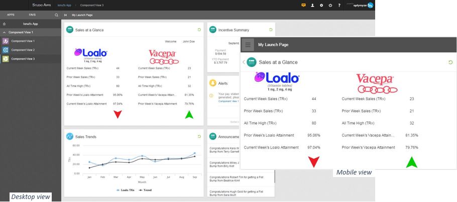 To enable customers to build rich Mobile-First apps that boost sales force engagement and data visualization regardless of the device used, Optymyze continues to invest in its App Component framework. Most recently, Optymyze developed additional app components and augmented existing capabilities with richer visualizations. One such example is the new Mobile-First Visual Records app component, available on any device, which displays data records in a rich format and helps create more intuitive layouts for reporting tools.