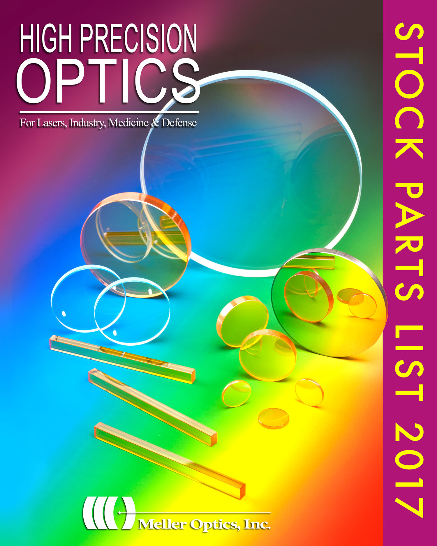 The Meller Optics 2017 Stock Parts List features over 75 categories of precision parts made from BaF2, CaF2, germanium, CO2 laser glasses, quartz, ruby, sapphire, silicon, ZnSe, ZnS, and more in various shapes and sizes. Updated weekly, the list includes hard-to-find optics that can be purchased at a 20 percent lower cost than special ordering and are shipped the same day.