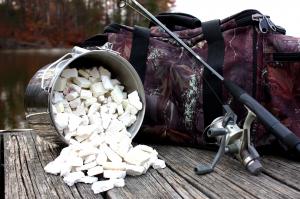 Dr. Anthony Dellinger, President of Kepley BioSystems and Murphy, his trusted fishing companion, prepare for a day on the water wielding a bucket of the KBI patent pending synthetic fish bait, OrganoBait.