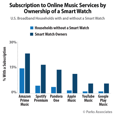 Parks Associates: 60% of smart watch owners subscribe to a paid streaming music service such as Apple Music, Spotify, or Pandora One