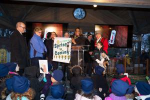 Hundreds of children and adults from across Staten Island attended the Groundhog Day celebration. The event began with student Tara Murphy from Staten Island’s P.S. 45 school singing the National Anthem. Next, students from the school’s third grade science classes recited a poem dedicated to Staten Island Chuck.