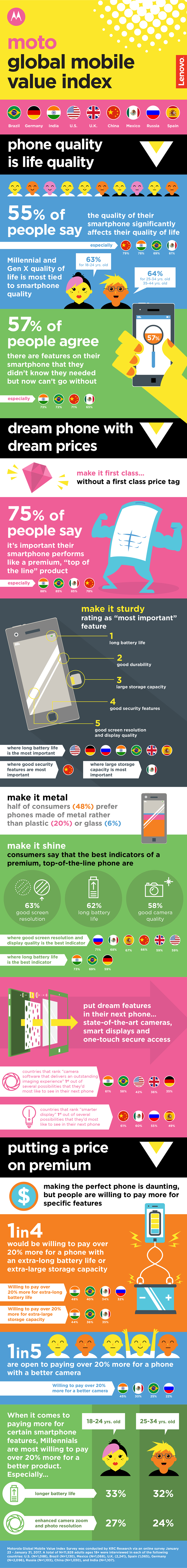 /EINPresswire.com/ -- MISSION, KS--(Marketwired - Feb 27, 2017) - (Family Features) People love their smartphones. To dig deeper, Motorola surveyed nearly 12,000 adults for its Global Mobile Value Index research to identify the most desired features. Learn more at Motorola.com.