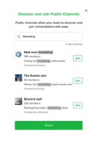 Public Channels - Users, especially those within large and growing teams, can use this new feature to easily discover and join meaningful conversations that are of interest to them within the team.