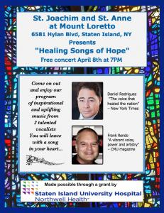 Staten Island University Hospital Northwell Health Presents Healing Songs of Hope April 8th At Mount Loretto