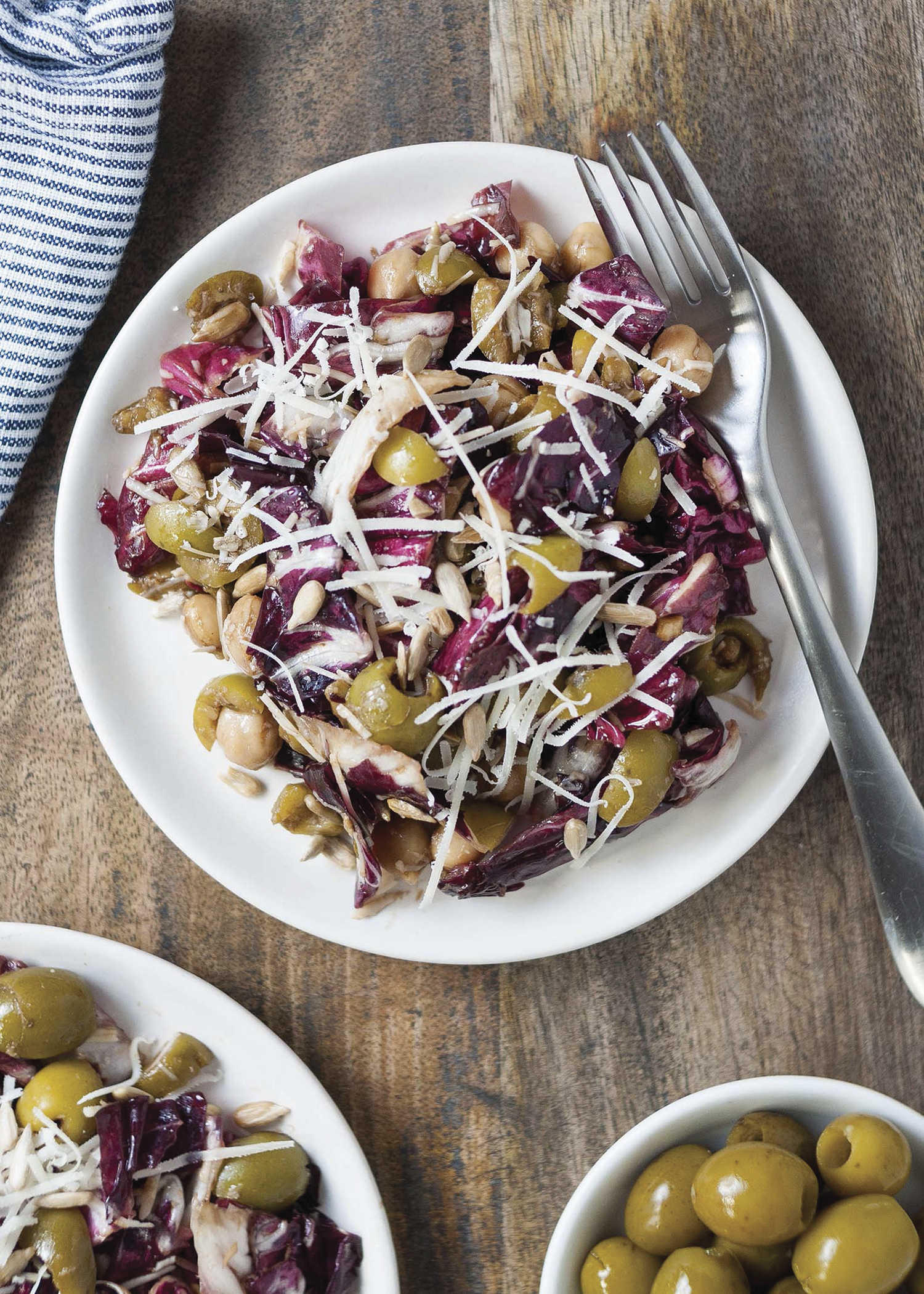 | Radicchio Salad with Olives, Chickpeas and Parmesan | ||