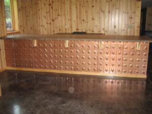 The rich copper works best in an earth tone setting and could turn a dinning room into a magnificent formal luxurious place to eat. Glenn "The Tinman" Eldridge says, "The copper finish works well on a back splash and adds life to an otherwise dull area." The copper especially look great in a 6" pattern for that man cave putting the copper finish on a bar front makes a welcoming call to the thirsty.