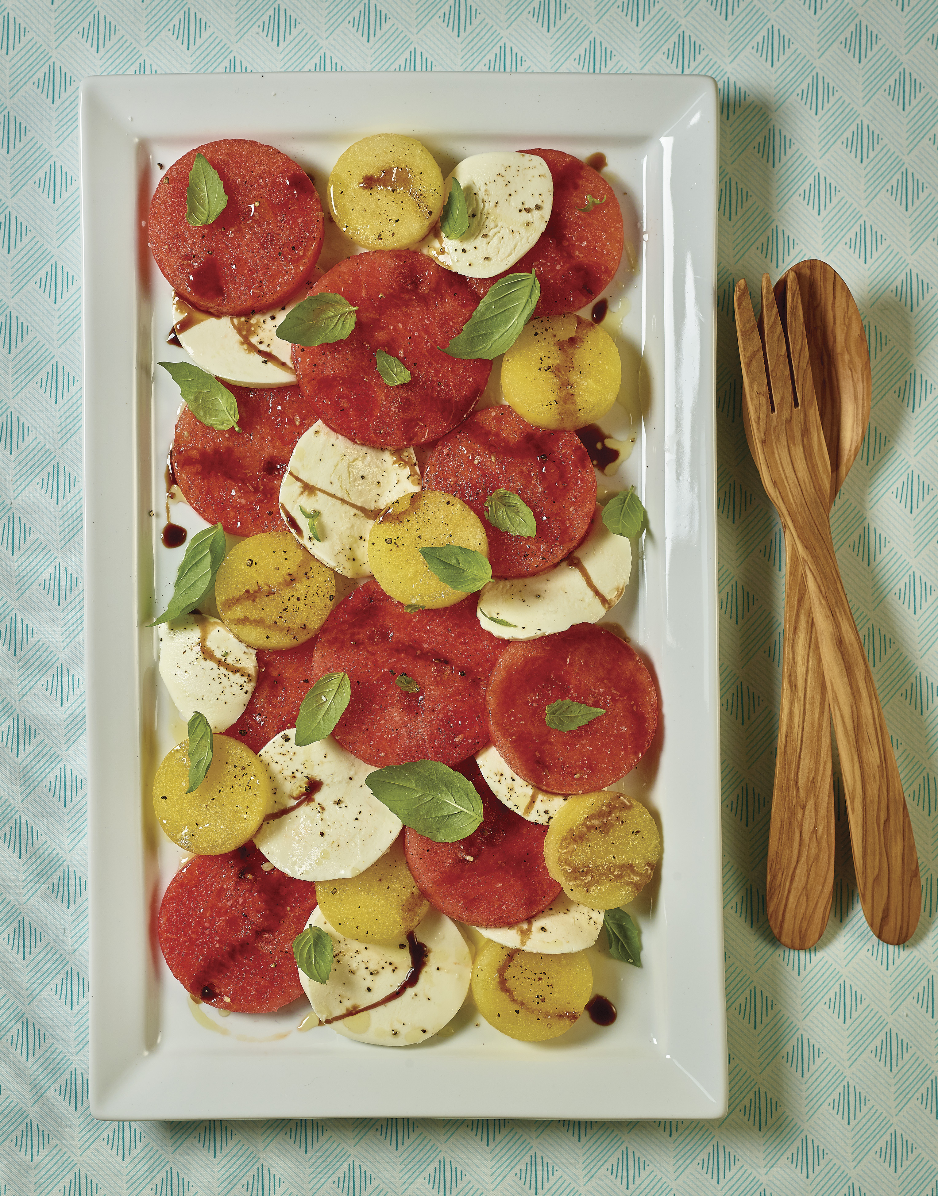 Watermelon is also a flavorful substitute for tomatoes, as shown in this traditional Italian appetizer, and contains higher levels of lycopene than any other fresh fruit or vegetable per serving, according to award-winning nutrition author and registered dietitian Elizabeth Somer.