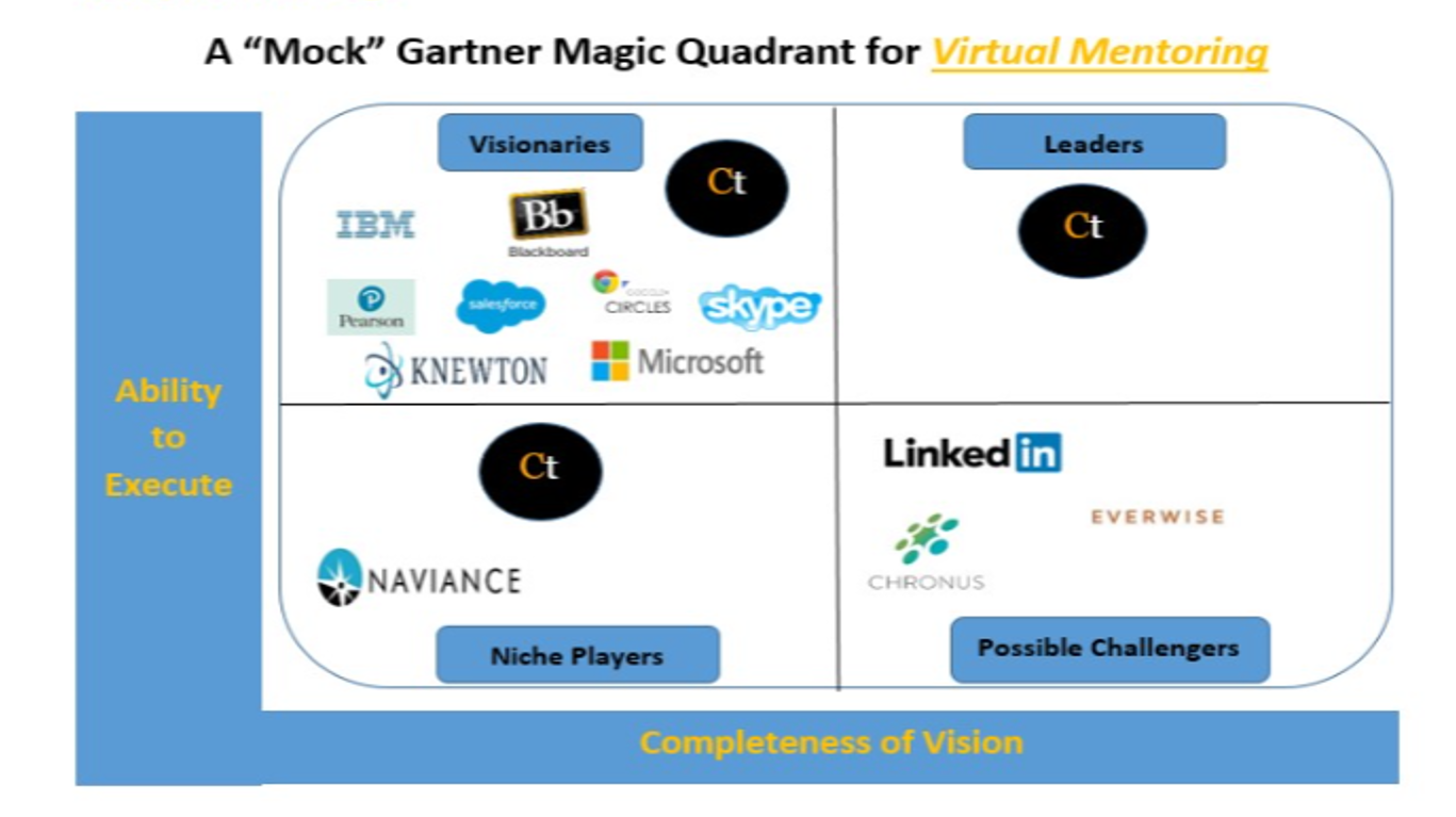 In all the many ways, we communicate together today is consolidated on a single private cloud platform called VMMP (Virtual Mentoring Management Platform). My own personal end-user “mock magic quadrant” diagram from my perspective would look like this today.