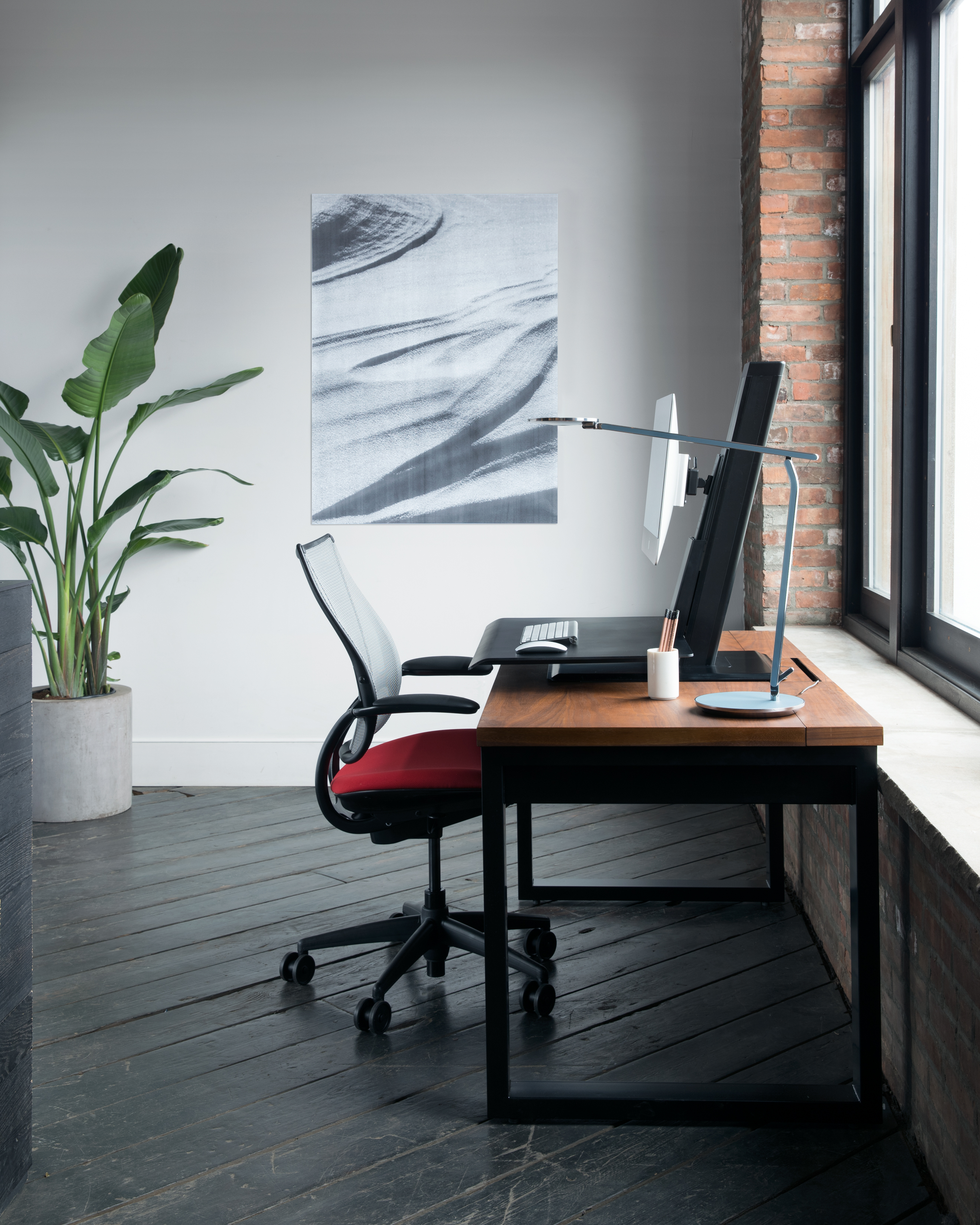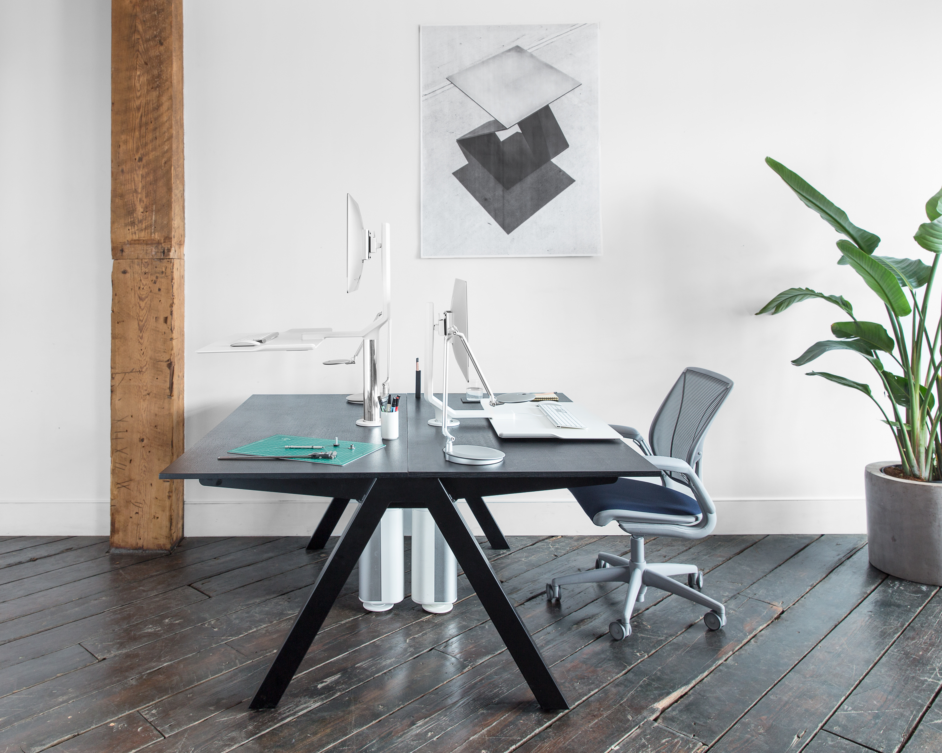 Constantly working to develop products that support the needs of the modern workplace, Humanscale Design Studio created QuickStand Under Desk as an understated workspace wellness solution that blends into any environment. Offering effortless functionality for smooth, seamless transition between sitting and standing, QuickStand Under Desk’s patented counterbalance mechanism is enclosed within the framework of a central column and resides beneath the desk surface. When at a seated height, the keyboard tray lies flat against the desktop, and the central column remains hidden for unobstructed views. Like its counterparts in the QuickStand family, QuickStand Under Desk provides built-in cable management for a streamlined, clutter-free look.