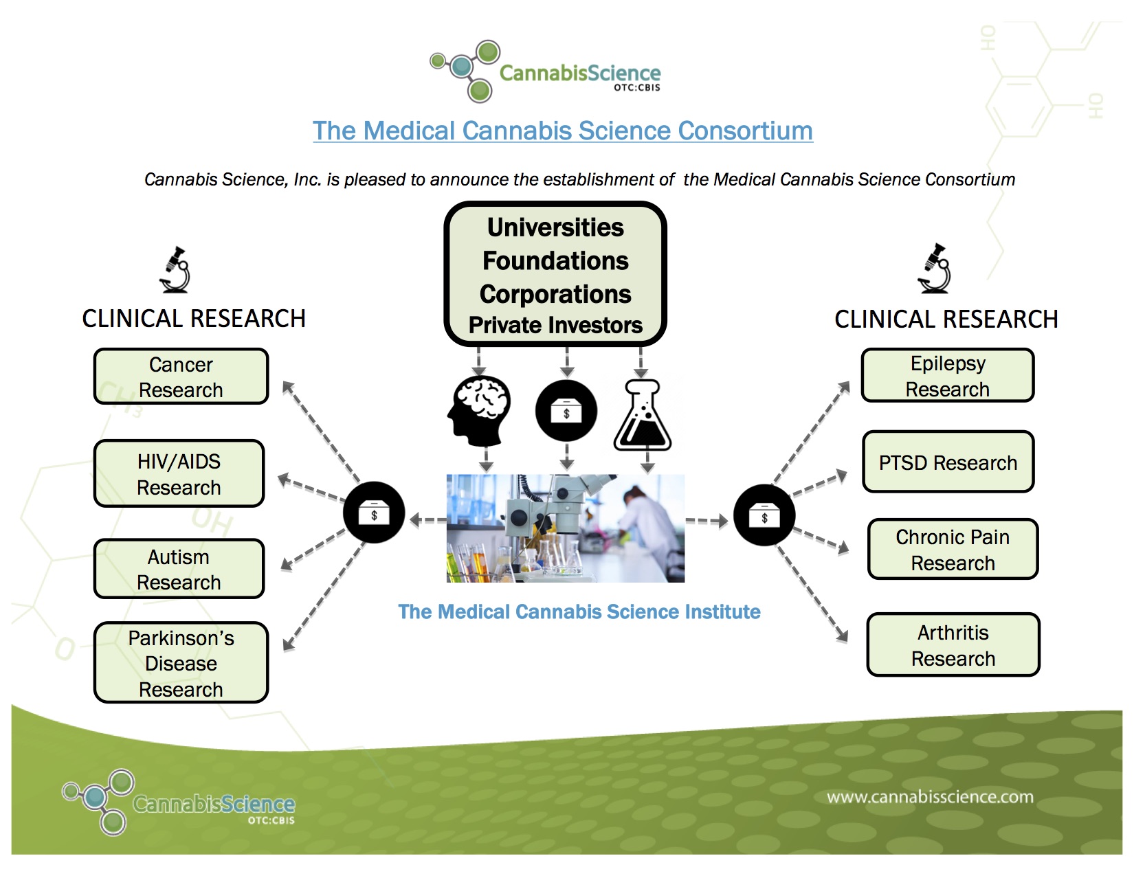"I am particularly excited about the Cannabis Science Consortium. This consortium, led by CBIS, will include collaborations with research and patient-care institutions in the U.S. and worldwide. Our Consortium provides CBIS with a global platform to develop cannabinoid-based medicines and to undertake clinical trials for several medicines that have the potential to help so many people. By partnering with leading individuals and institutions, we hope to increase the cannabinoid-based medicines in our development pipeline, and shorten the release time. CBIS, Inc. is working in three major areas: more efficient and effective delivery of cannabinoids to the sites of disease; understanding how to create the right mixtures of cannabinoids; and defining the diseases that may benefit from cannabinoid therapeutics. In these endeavors we are informed by the 2016 National Academies of Sciences, Engineering, and Medicine Report on 'The Health Effects of Cannabis and Cannabinoids: The Current State of Evidence and Recommendations for Research'," stated Cannabis Science Inc., Dr. Allen Herman, Chief Medical Officer (CMO).