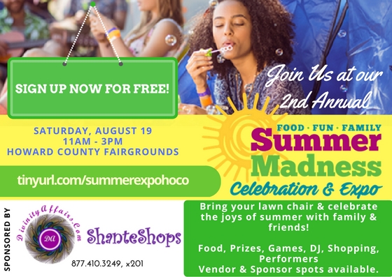 WEST FRIENDSHIP, MD, 21794, July 11, 2017 /EINPresswire.com/ -- Gas up the car and gather your family and friends for the 2nd Annual Summer Madness Celebration and Expo! Divinity Affairs will be setting up this one stop shop for food, fun, and family at the Howard County Fairgrounds Saturday, August 19, 2017 from 11am – 3pm. Whether you are attending as a vendor or guest, this is an event you don’t want to miss!