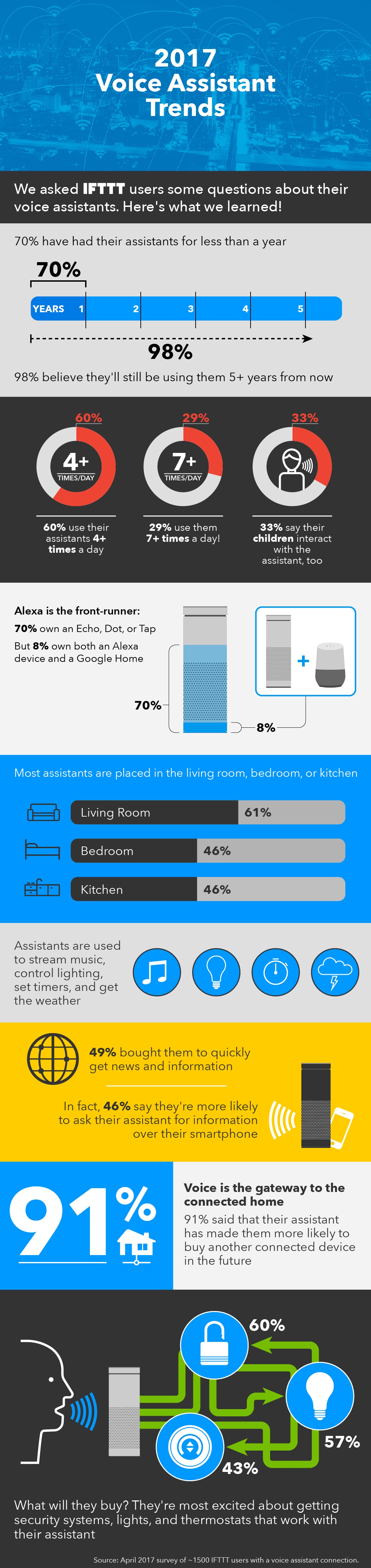 - 98% of IFTTT users believe they'll still be using their voice assistants five years from now